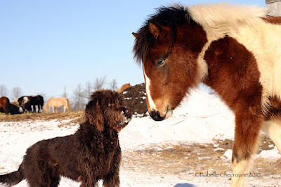 Picola est la fille de Selka et Pirate. Cadette de la cuvée 2009, elle est aussi la plus petite par la taille (elle a rattrapé Pimbina et elles font maintenant la course aux centimètres). Même si Baabul est de trois mois son cadet - ce qui fait une énorme différence quand on est un poulain - question centimètres, il la domine largement. Mais Picola a trouvé la parade... Vous trouverez ci-dessous, un épisode illustré de leurs amours enfantines et tumulteuses...